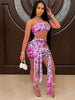 2 Piece Sheer Mesh Leopard Halter Tube Top Skirt Set