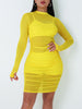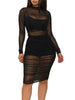 3 Piece Long Sleeve Ruched Sheer Mesh Bodycon Dress