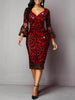 Feature: Mesh. patchwork. floral print. bell sleeve. long sleeve. v-neck. split. bodycon. midi dresses.