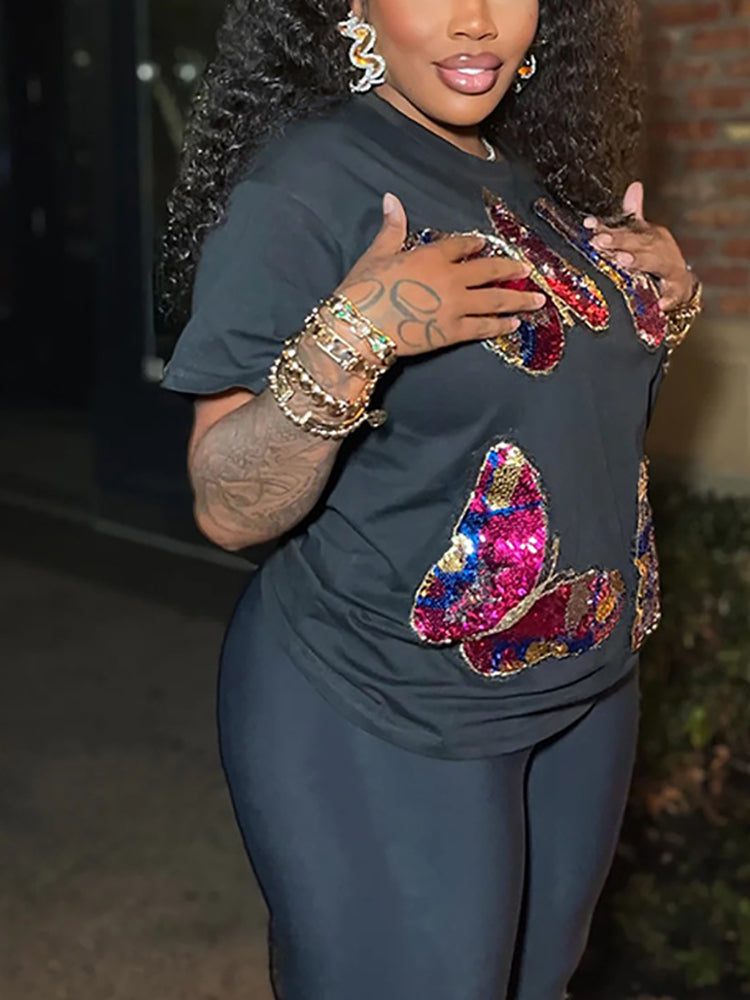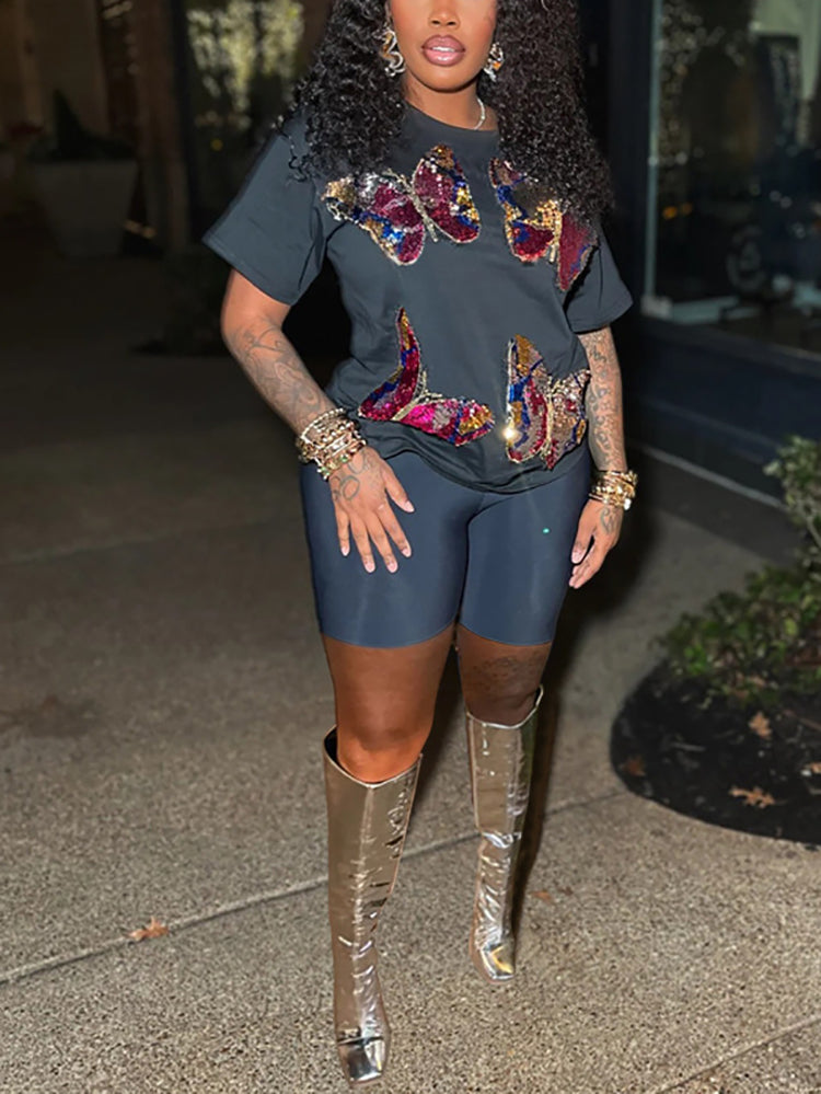Butterfly Sequin Shorts Set