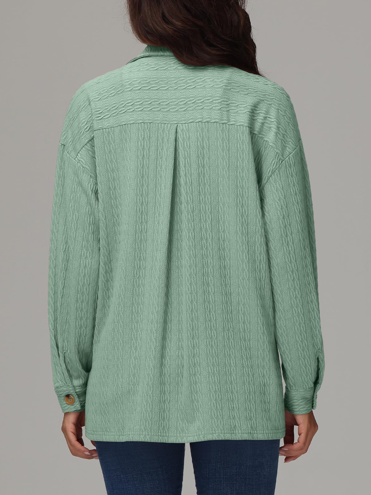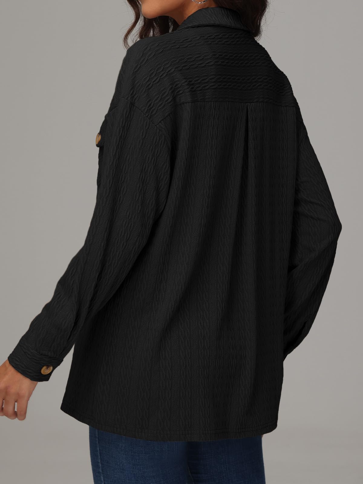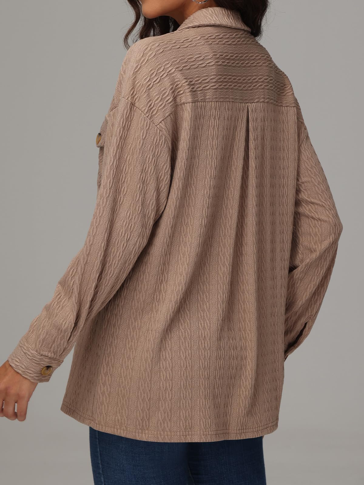 Constructed with 97% polyester and 3% spandex. this long sleeve knit top offers a timeless button-down closure. allowing for effortless customization of your outfit. Whether you choose to wear it unbuttoned for a laid-back feel or fully buttoned for a polished look. the added pockets provide ease and functionality. making it a practical addition to your wardrobe.