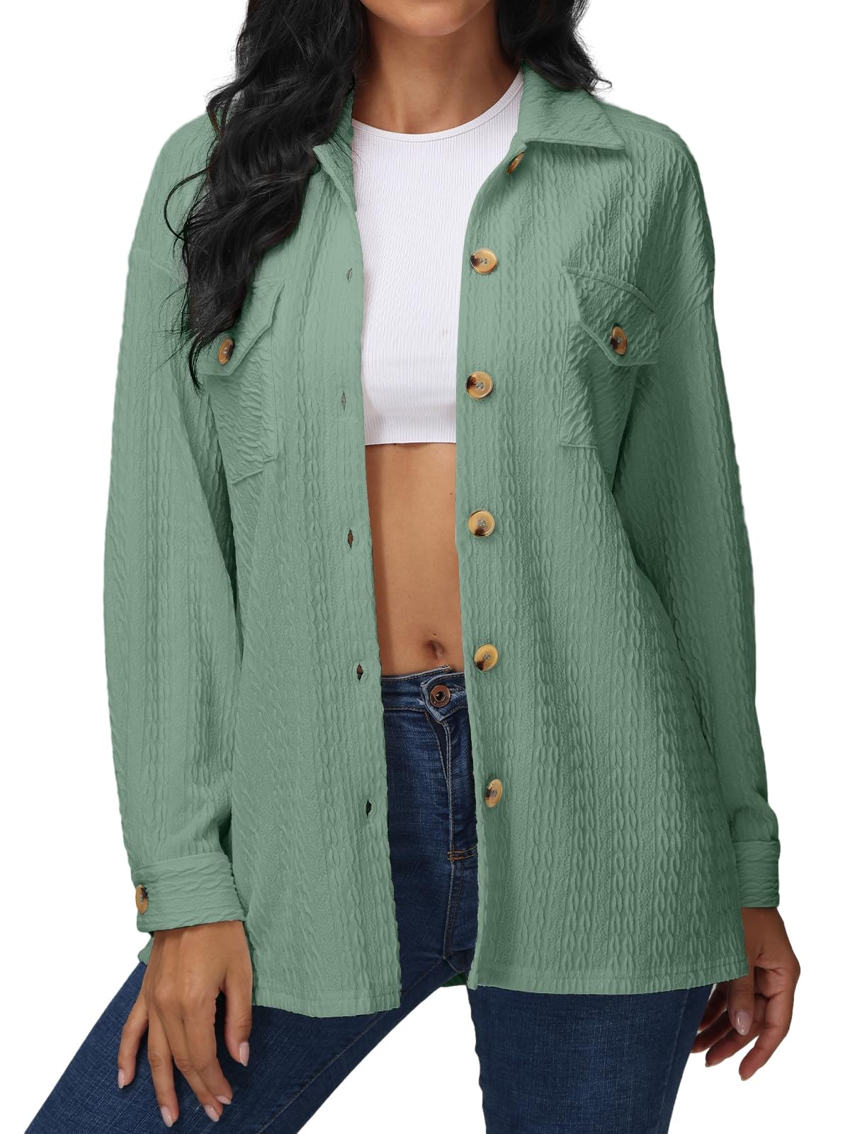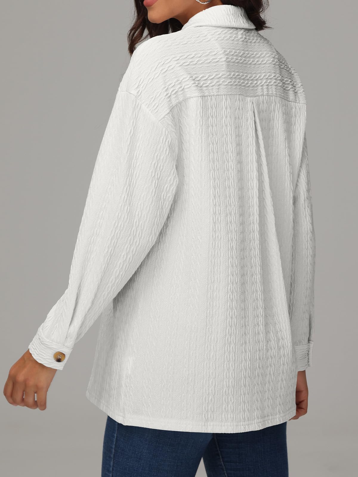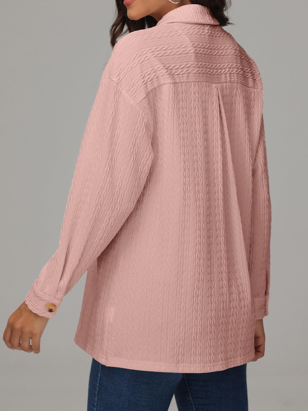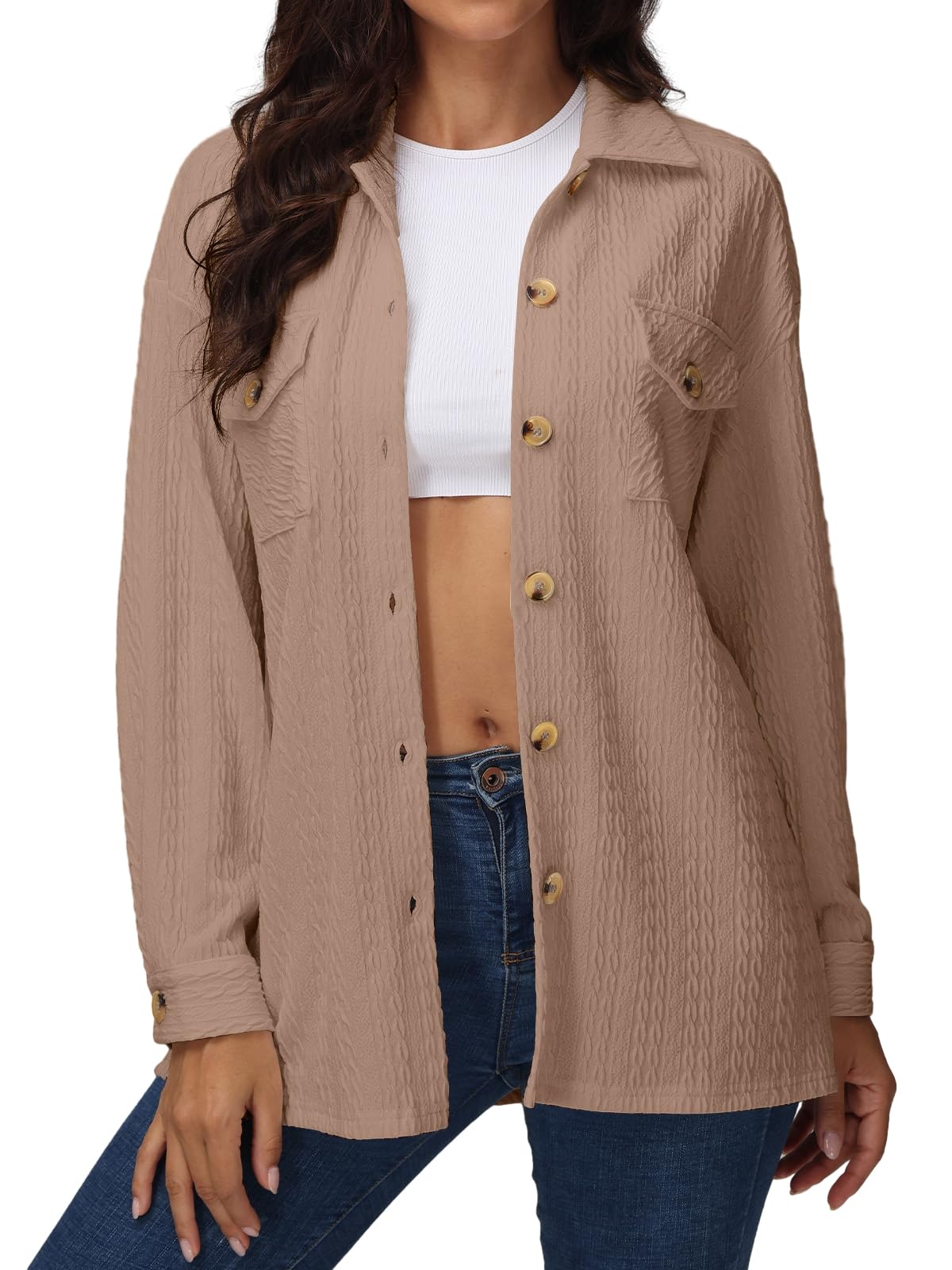 Constructed with 97% polyester and 3% spandex. this long sleeve knit top offers a timeless button-down closure. allowing for effortless customization of your outfit. Whether you choose to wear it unbuttoned for a laid-back feel or fully buttoned for a polished look. the added pockets provide ease and functionality. making it a practical addition to your wardrobe.