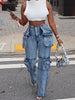 Casual  Multi-Pocket Straight Leg Patchwork Jeans