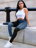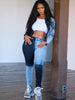 Material: Denim. made of 70%-80%?cotton. polyester. soft. warm. skin-friendly. and comfortable. Features: Denim. high waist. color block patchwork. zipper. button. bodycon jeans. Style: Casual.