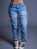 Features:Denim. solid color. cut-out. ripped. skinny long pants.