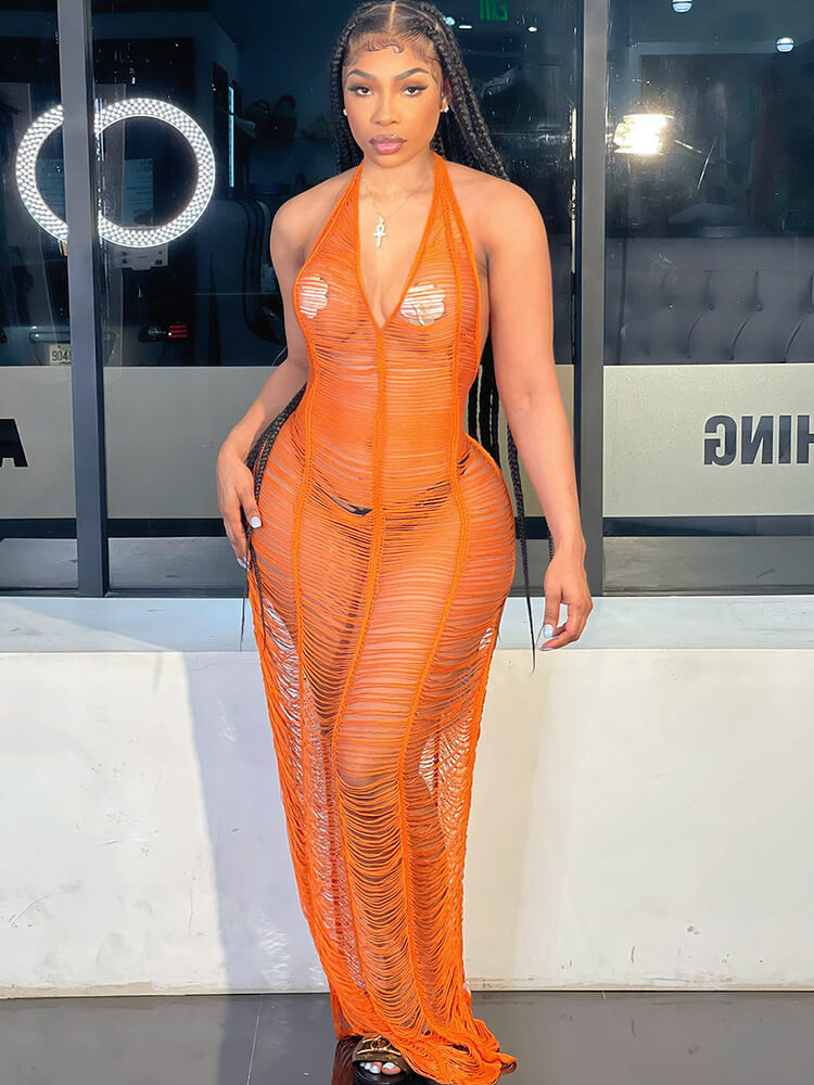 Halter Tassel Backless Bikini Cover Up Maxi Dress