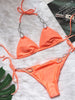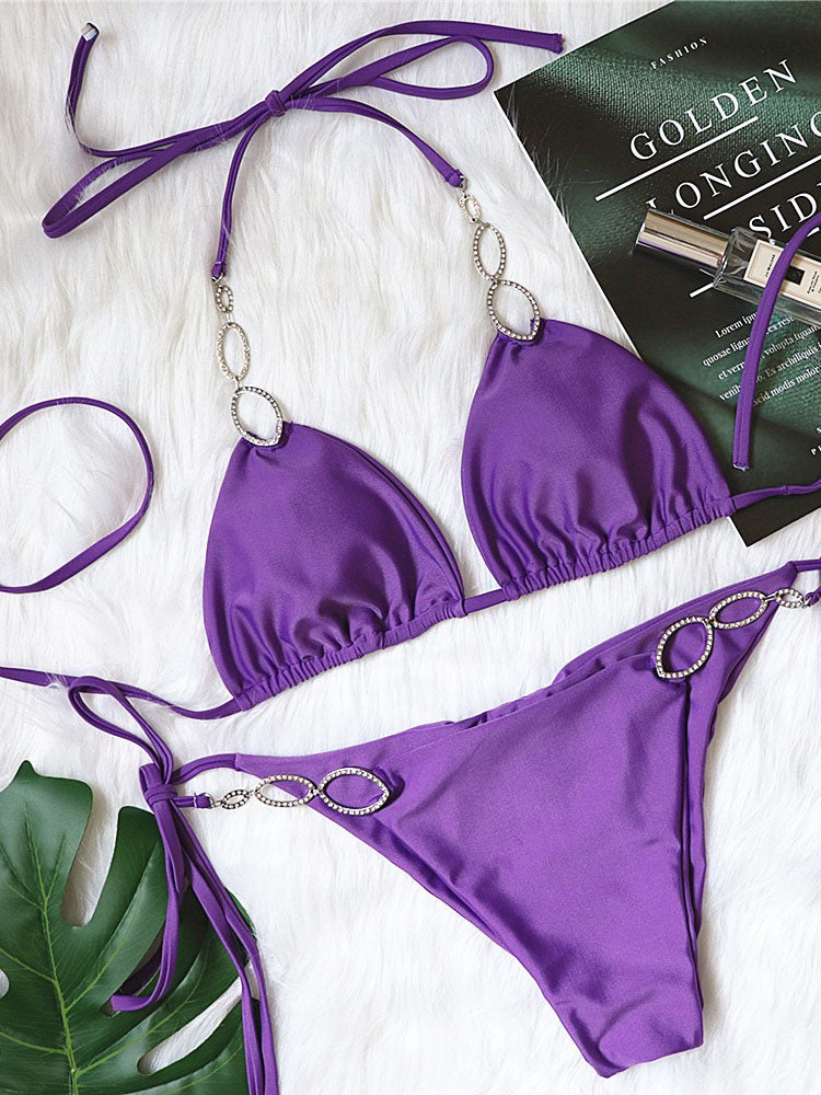 Metal Rhinestone Accented Monochrome Swimsuit Set