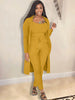 Features: Ribbed knit. stretchy. solid color. long sleeve. open front. long cardigan. sleeveless. crop top. high waist. strappy. bodycon. long pants.