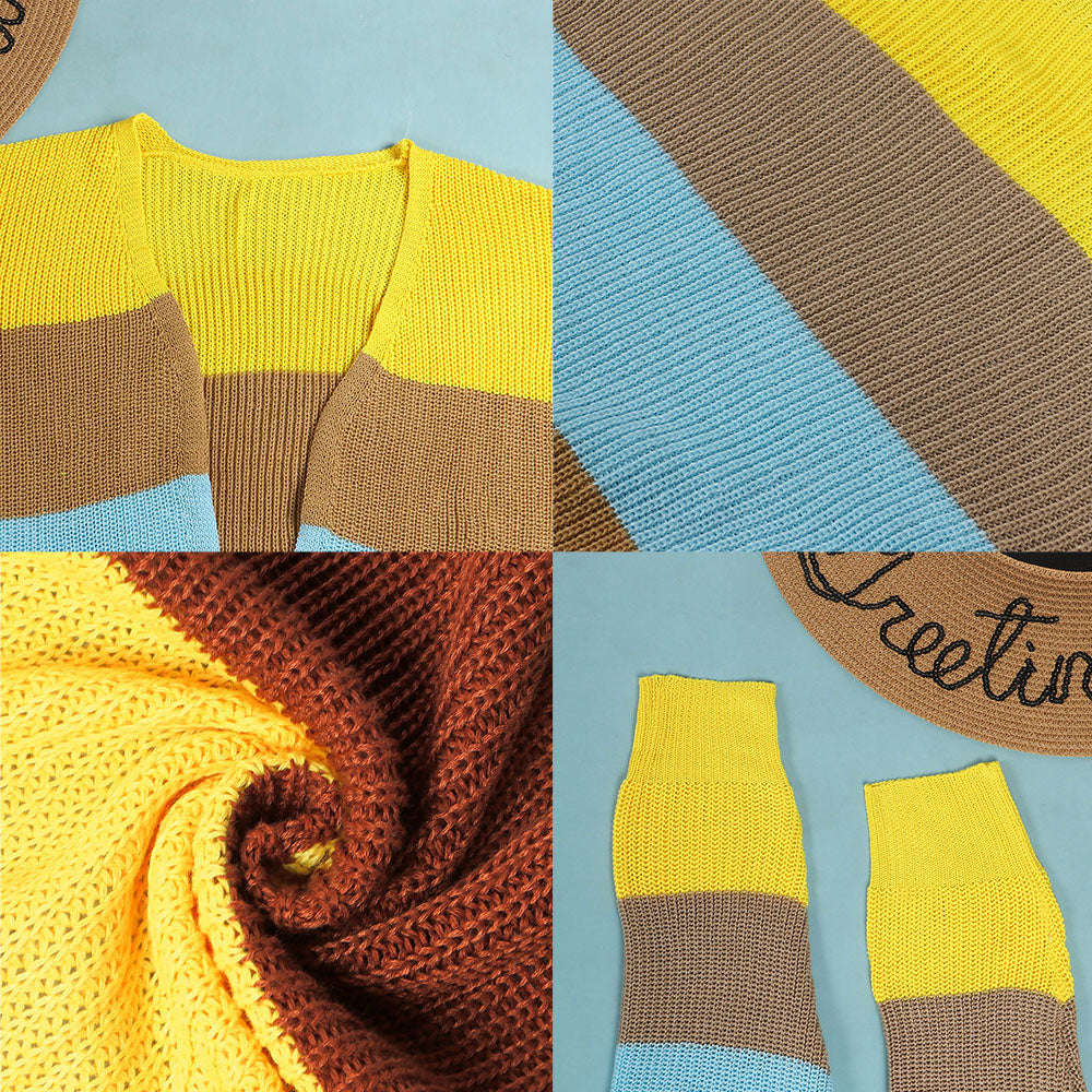 Plus Size Color Block Long Sleeve Sweater Cardigan