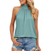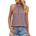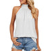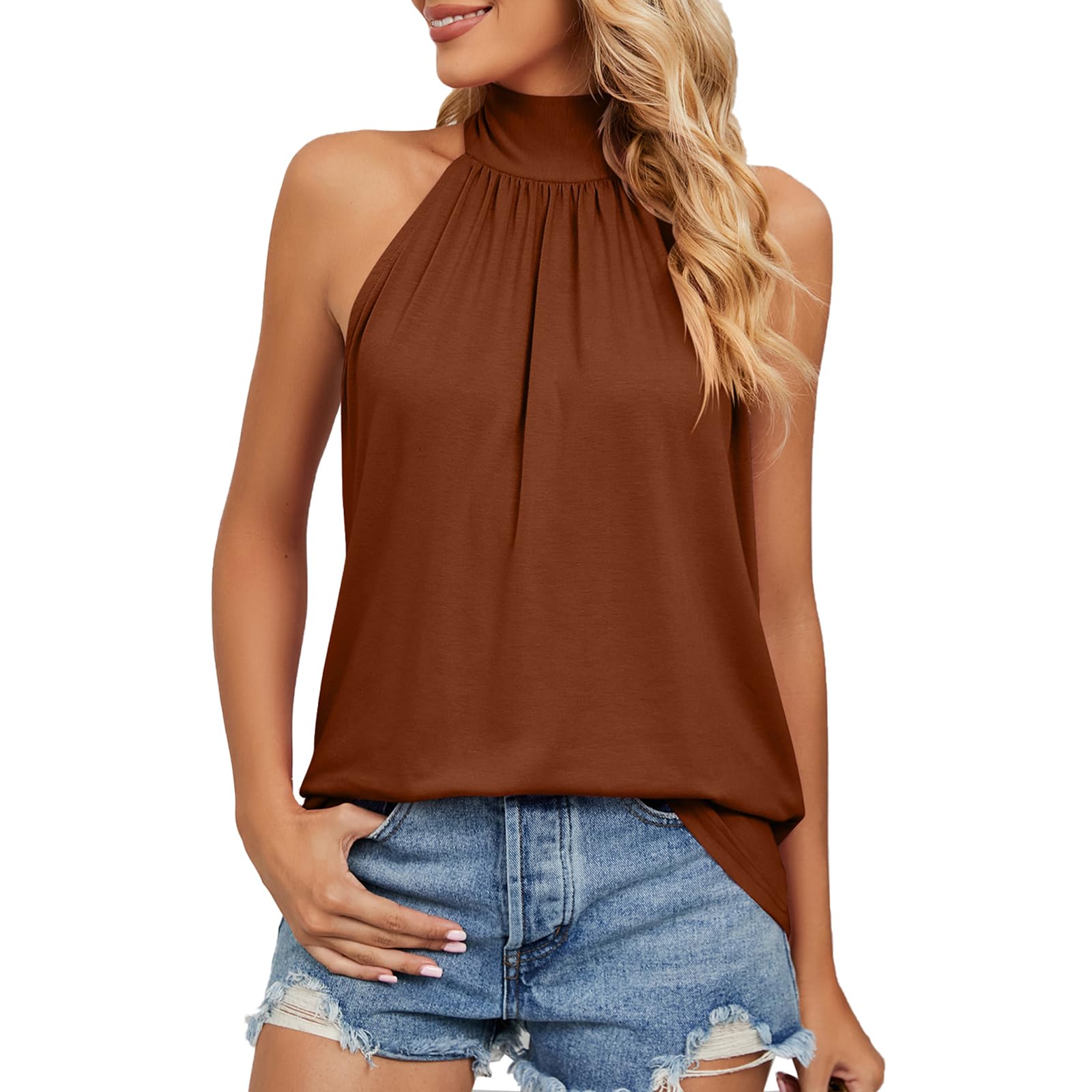 This sleeveless mock neck halter top for women offers a stylish and versatile option with its solid color. off shoulder design. and bow tie. The hanging neck accentuates the shoulders. creating a slim and chic look.