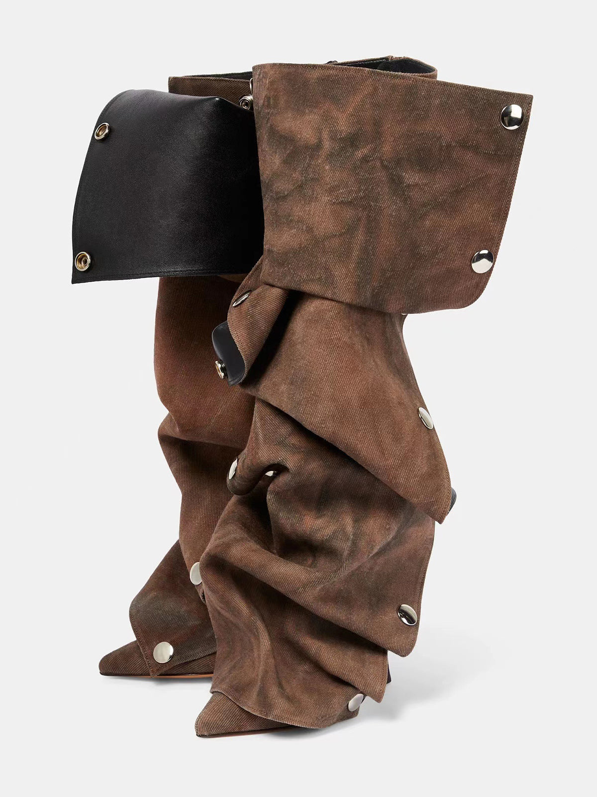 Studded Ruched Stacked Heel Long Boots