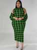Two Piece Houndstooth Cardigan & Cut Out Midi Dress