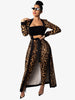 Leopard is an eternal fashion element in modern times. Long sleeve front open maxi cardigan design with high waisted skinny pants makes the club outfits for women sexy. wild and desirable.