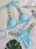 Features:Rhinestone. two-piece outfits. sexy. sleeveless. backless. halter. tie-up. crisscross. bra. brief. bikini.