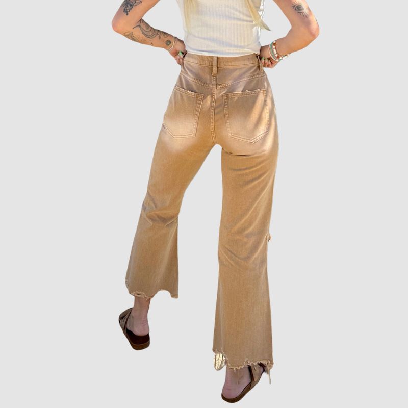 Features:Pants. jeans. ripped design. bootcut design. washed. denim fabric. high waist. straight-leg. wide leg. relaxed fit. solid color. zipper front. unisex. couple outfits.